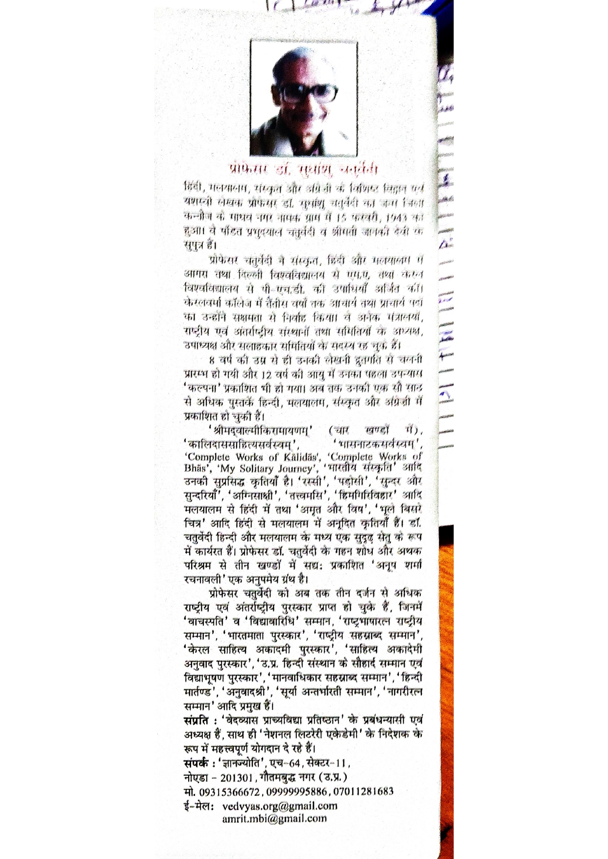 डॉ सुधांशु चतुर्वेदी